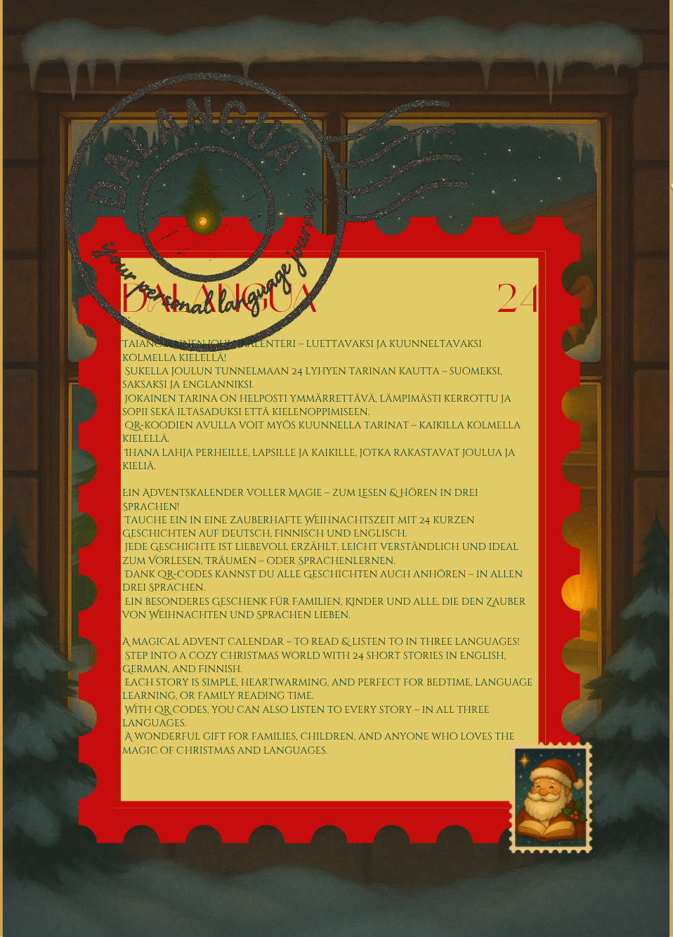 Wir bieten zweisprachige Bilderbücher an. Das bedeutet, dass die Geschichte in zwei Sprachen geschrieben ist, was das Vertrautwerden mit der Fremdsprache erleichtert. Die Bücher eignen sich für Kinder, die die Sprache lernen oder die in einem zweisprachigen Umfeld aufwachsen, aber auch für Erwachsene sind unsere Bücher geeignet. Alle unsere Bücher enthalten ein Hörbuch in zwei Sprachen. Die Bücher werden in hoher Qualität in einem glänzenden Hardcover im Dina-4-Format gedruckt. Die Anzahl der Seiten variiert je nach Geschichte leicht. Alle unsere Bücher können auch personalisiert werden.…